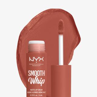 The Smooth Whip Matte Lip Cream with shea butter, cocoa butter, and nourishing oils leaves a cared-for and intensely colored lip look with a matte finish without lines and crumbs.