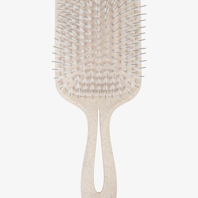 The Eco Paddle Brush is ideal for medium-long hair and extensions. It effectively detangles hair without creating static charges, featuring soft fiber bristles that are gentle on the scalp. With its wide cushioned design and non-slip handle, it eliminates frizz and allows for straight, smooth looks during blow-drying. This must-have brush is a great addition to your hair care routine and is PETA certified, cruelty-free, and vegan.