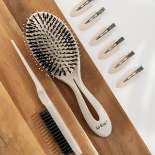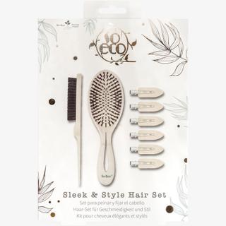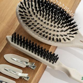 The essential hair set ensures perfectly smooth hair. This exclusive set contains everything you need for a neat and controlled look. The six clips hold the hair securely in place, while the bristle brush minimizes frizz and ensures a sleek finish. The hairbrush also helps you master the perfect "slicked-back" style.