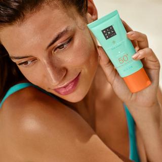 Ensure your skin has proper sun protection with this face cream with SPF 50 from The Ritual of Karma. A rich and moisturizing cream that absorbs quickly into the skin and contains an advanced protection system featuring a powerful antioxidant complex based on organic white tea, natural vitamin E, and ginkgo biloba. By applying it on your skin, you help protect it from premature aging caused by UVA and UVB rays. Its formula is water-resistant, making it perfect for use at the beach or in the pool.