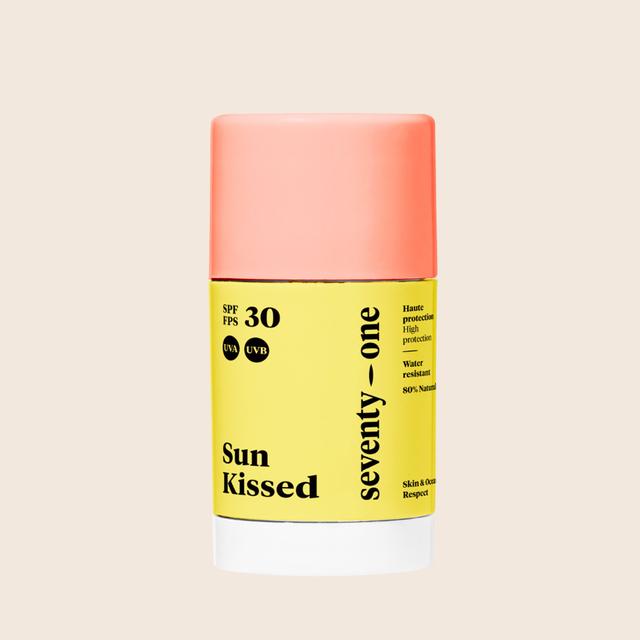 The SunKissed Stick SPF 30 offers high sun protection for sensitive areas of the face like the nose and cheekbones. Its waterproof formula shields skin from harsh elements like wind, salt, and cold, while antioxidant ingredients provide hydration. This convenient stick creates a powerful barrier against UVA/UVB rays and is safe for children over 3 and pregnant women.