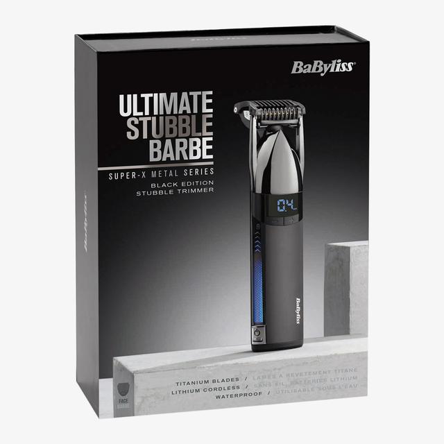 Achieve superior beard trimming with the BaByliss Super-X Metal Stubble Trimmer. Featuring Japanese steel blades and a pivoting head, it delivers precise, skin-friendly results by perfectly following facial contours. With 24 digital length settings (0.4-5mm), a powerful 5-hour lithium-ion battery, and a 100% waterproof design, this trimmer offers ultimate flexibility and convenience for your grooming routine.