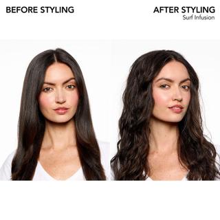 Surf Infusion is an oil and salt-based spray designed to give hair a wavy and shiny appearance. This bi-phase formulation contains tropical oils and marine minerals, perfect for moisturizing and protecting dry hair, while the integrated UV protection shields it from sun damage.