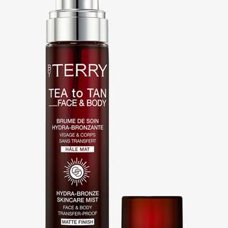 This transfer-proof formula colors the skin without tanning agents and is easy to remove with water! An iconic product from BY TERRY, the Tea to Tan Face & Body Spray is a unique blend of skincare perfection and bronzer to hydrate and protect the skin with a natural sun-kissed glow. Like a tea infusion, its water-based formula gives the skin a lasting coloration, without coverage. The lightweight and fresh texture dries quickly on the skin for easy and even application without coverage or transfer. Enhancing the sensory journey, an alluring fragrance accompanies each use, inviting you on a delightful trip.
