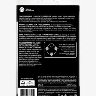 The Tweezermate 10x magnifying mirror offers a clear view for facial care thanks to the LED lighting. It is a handy companion for precise eyebrow removal, inserting contact lenses, or applying makeup. The mirror can be attached to any smooth and clean surface using the sturdy suction cups on the back, making it ideal for home use and travel.