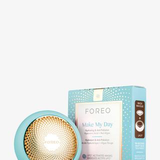 UFO is the world’s most advanced smart mask, designed to transform your favorite 20-minute sheet mask treatment into a 90-second treatment. It combines UFO-activated masks with FOREO's Hyper-Infusion Technology and LED light therapy for a professional-level treatment at home. The package includes the UFO device, USB charger, Quick Start Guide, Basic Manual, Scratch Card, Acrylic Stand, and Make My Day mask. UFO works in combination with specially designed UFO-activated masks, utilizing innovative technologies such as thermotherapy and cryotherapy for maximum effect and a soothing facial massage.