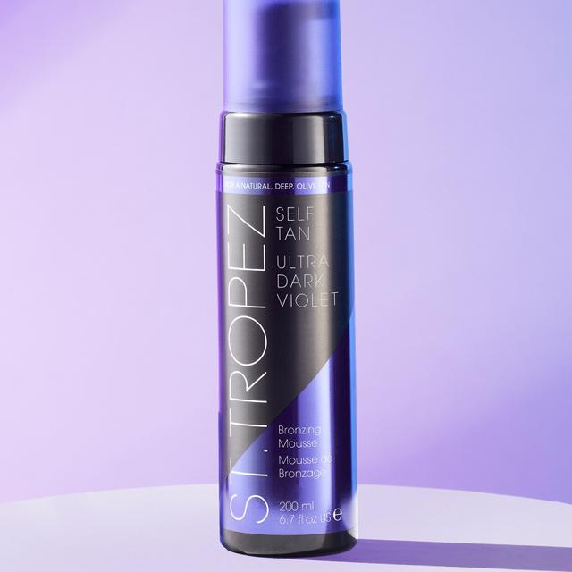 The Ultra Dark Violet Bronzing Mousse from St. Tropez is an innovative product with an exclusive violet base. This product allows for an intense yet natural tan. Enriched with vitamin E and jojoba, it provides long-lasting hydration and applies easily without streaks. The lightweight, non-sticky formula ensures a tan that lasts up to ten days, fading evenly. It can be applied using the Luxe Applicator Mitt. The tan develops in 6-8 hours.