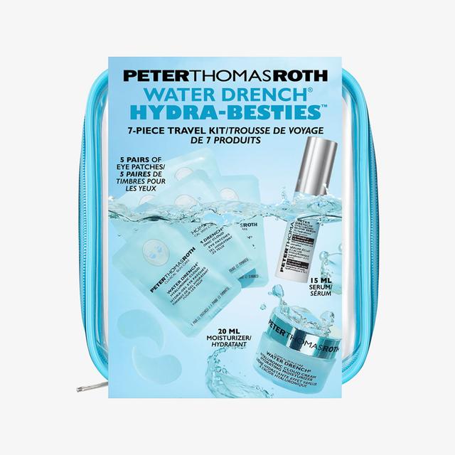 This travel set features Peter Thomas Roth's best-selling Water Drench® products, designed to hydrate the skin and enhance the complexion's freshness and radiance. The set includes eye patches, a lightweight serum, and a hydrating cream that leaves the skin smooth and soft to the touch, powered by moisturizing ingredients like hyaluronic acid.