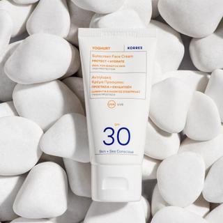 The lightweight face cream with sun protection and a high protection factor helps protect against light-induced skin aging. It provides long-lasting active hydration, elasticity, and an optimal feel. Yogurt is a natural source of protein with unique moisturizing properties. Panthenol strengthens the skin's hydration barrier and ensures a healthier appearance.