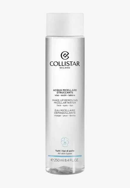 Uji micellar i Collistar heq efektivisht grimin, papastërtitë dhe grimcat e papastërtisë. Formulimi është i përshtatshëm për lëkurë dhe sy të ndjeshëm dhe është e pasuruar me violën italiane dhe inulinë, një prebiotik natyror. Ambalazhi është 100% i riciklueshëm. Formula është pa silicone, përbërës me origjinë shtazore, parfum, alkool dhe tensidë agresivë. E testuar dermatologjikisht dhe oftalmologjikisht.