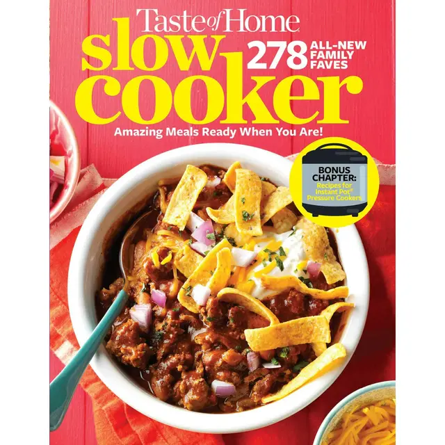 Darka të përzemërta dhe ngushëlluese, të gatshme kur jeni ju - janë ato që e bëjnë tenxheren me gatim të ngadaltë një mik të zënë për kuzhinierët. Qoftë duke u përballur me një orar pune të ngjeshur, duke shkuar dhe duke u kthyer nga aktivitetet pas shkolle, apo thjesht duke u përpjekur të servirni rregullisht vakte të gatuara në shtëpi, kuzhinierët e sotëm familjarë i drejtohen recetave me gatim të ngadaltë për të shkurtuar kohën në kuzhinë. Tani mund ta mundni kohën me koleksionin krejt të ri të gatimeve të preferuara në Taste of Home Slow Cooker! Përfshin një Kapitull Bonus për Instant Pot!